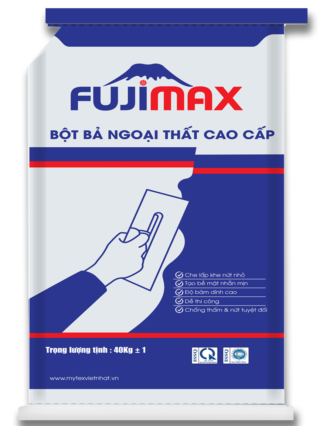 Bột Bả Ngoại Thất Cao Cấp FUJIMAX là hóa phẩm gốc cement được đặc chế dùng để tạo bề mặt phẳng, nhẵn mịn trước khi sơn trang trí, giúp cho nền tường bê tông hay vữa trát được bền đẹp. Phù hợp với thời tiết nóng ẩm.